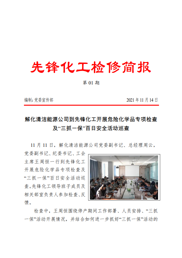 先鋒化工檢修簡(jiǎn)報(bào)01