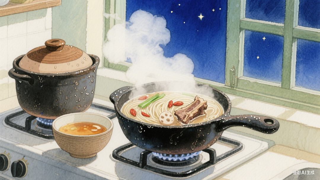 暮色漸濃時,瘋玩了一下午的我回到家中,母親在灶臺上燉起了排骨湯。鍋里的熱氣氤氳著整個廚房,排骨與蓮藕在沸水中翻滾,溢出陣陣暖香。這是“貼秋膘”的老習(xí)俗,母親總說,秋風(fēng)起時,要補些營養(yǎng),才能抵御漸寒的天氣。喝上一碗排骨湯,咬著煮的軟軟糯糯的蓮藕,滿足的欣喜在臉上慢慢暈染開,在立秋的煙火氣里模糊而清晰起來,讓人懂得,那些被歲月沉淀的情感,恰似秋釀的酒,愈久愈醇厚。